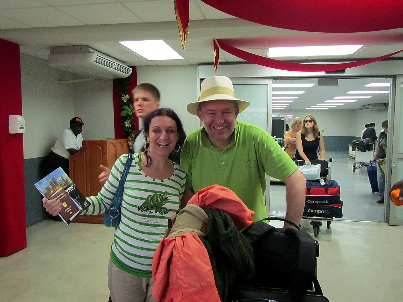Unsere Gäste erreichen mit Verspätung – aber trotzdem gut gelaunt – den Flughafen Crown Point, der nur 10 Gehminuten von unserem Ankerplatz entfernt ist.