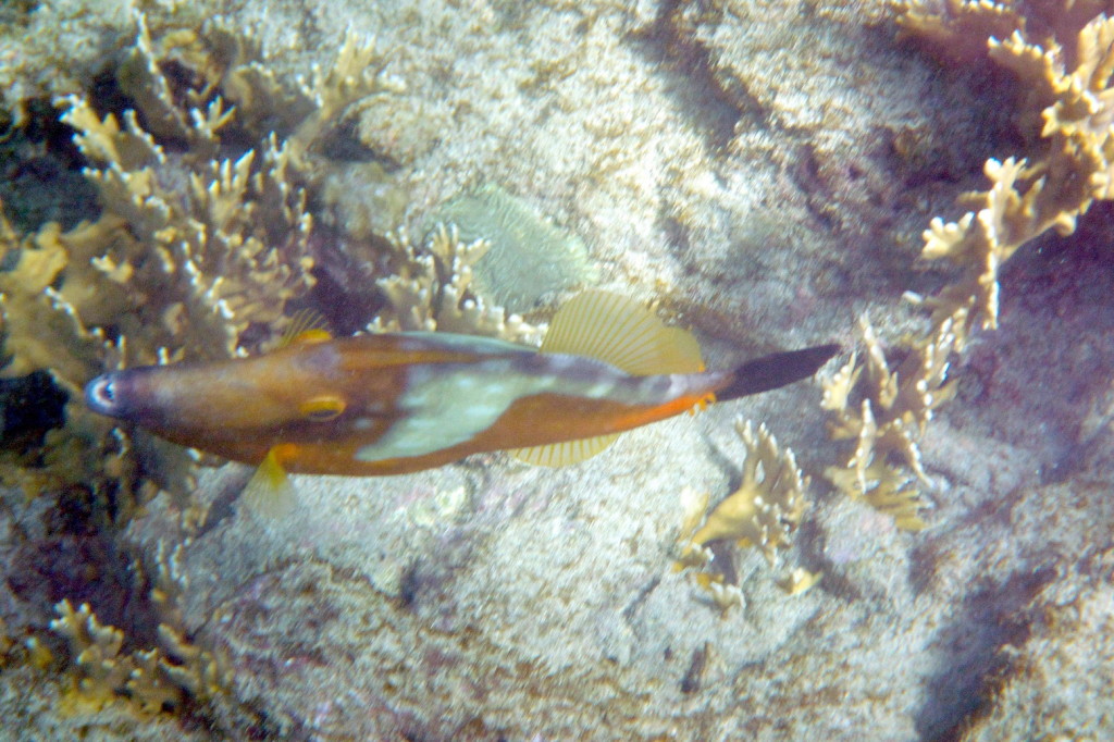 Nach der etwa 1 ½ stündigen Wanderung bergauf und bergab werden wir wieder auf das Boot gehievt (es herrscht ziemlicher Schwell) und zur Goat Island gebracht, wo wir das Korallenriff bestaunen dürfen, entweder schnorchelnd oder durch den Glasboden des Bootes.